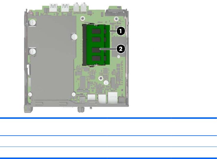 На системній платі є два розніми SODIMM, по одному розніму на кожен канал. Розніми позначені DIMM1 і