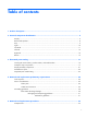 Table of contents 1 Product description ........................................................................................................... 1 2 External component identification ..................................................................................... 6 Display ................................................................................................................................... 6 Buttons and speakers ..........................................................................