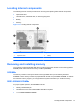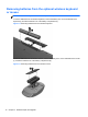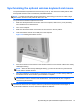9. Remove the three screws (1) securing the stand to the access panel, and then remove the stand