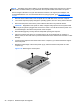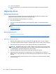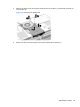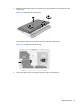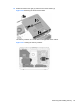 7. Rotate the bottom edge of the access panel up (2), and then lift the access panel off of the