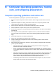 14. Set the top edge of the access panel down on the top edge of the computer chassis (1). Be sure