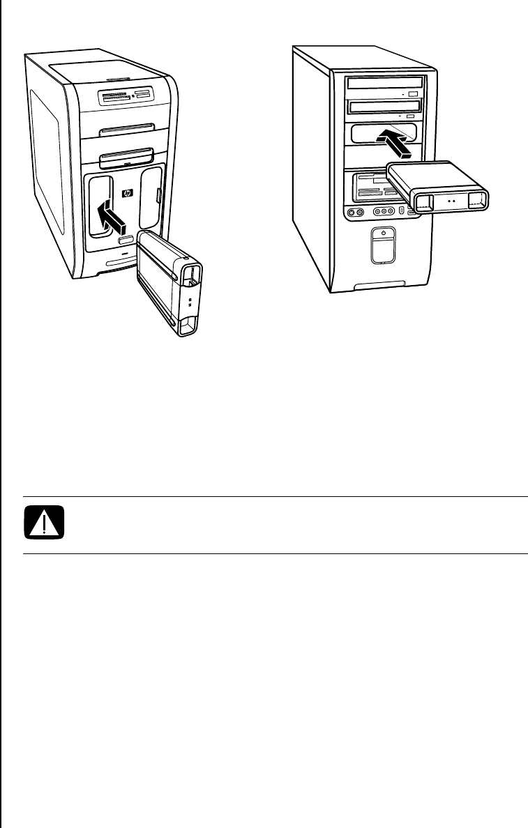 bottom of the PC drive bay. Do not force the drive into the bay; it should slide