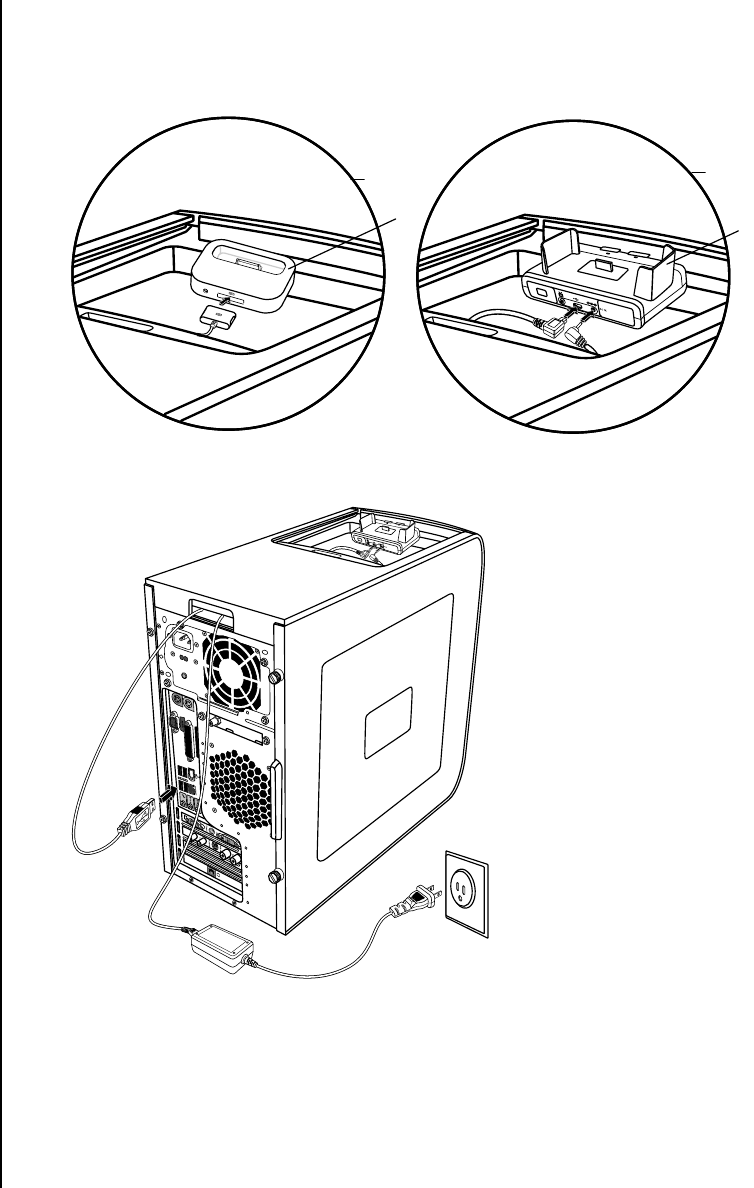 4 Thread the cables that came with your peripheral device, iPod Dock (K) or