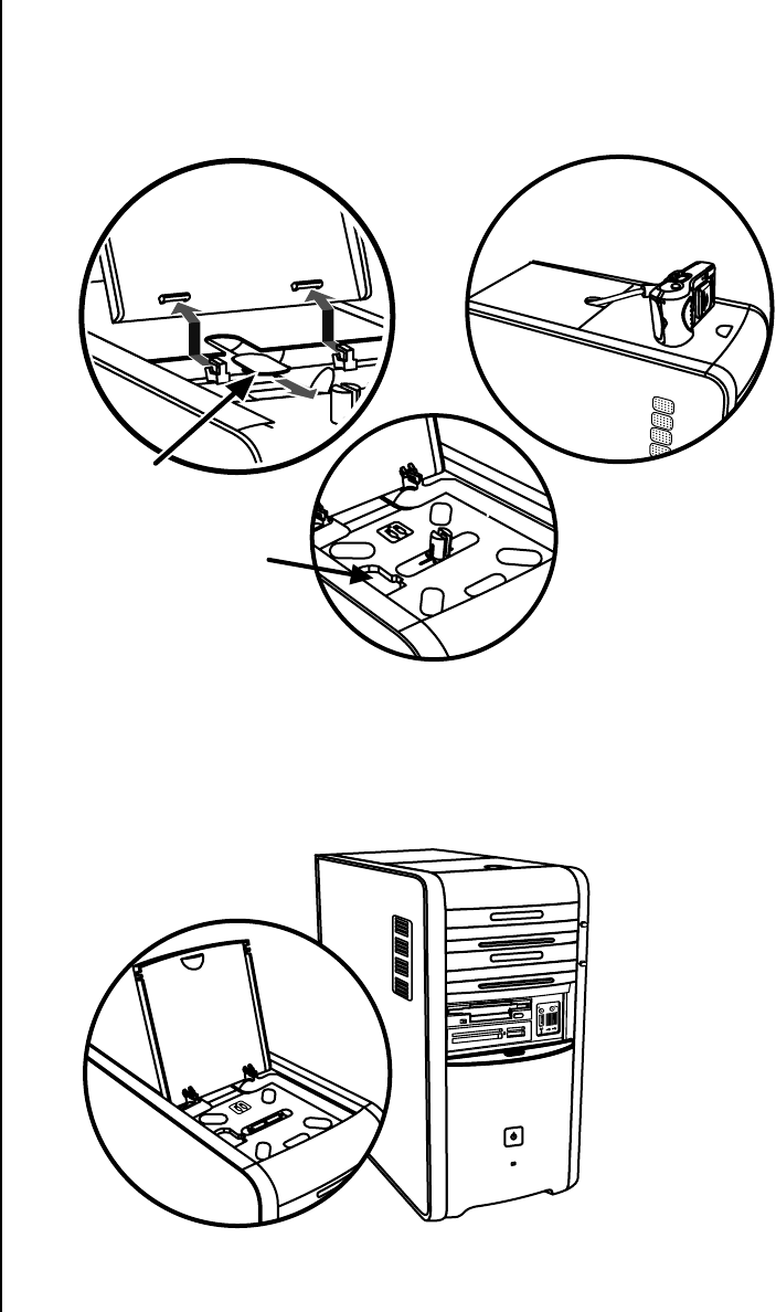 4 Connect the cables to the device and place it on top of the chassis (G in