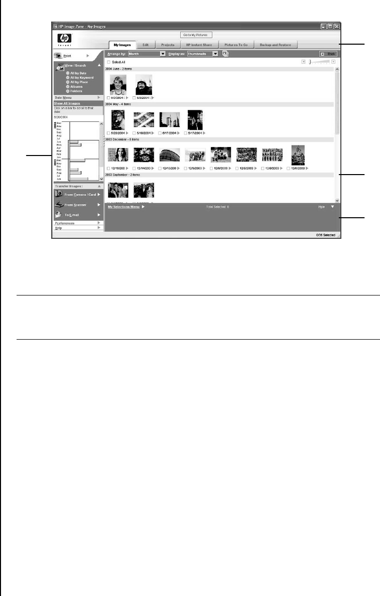 NOTE: Click the button labeled Preferences (B) to customize the HP Image Zone