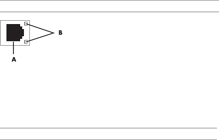 2 With the computer turned on, check the indicator lights (B) next to the Ethernet