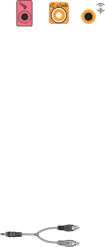 cable into the microphone (pink) connector or the center speaker/subwoofer (gold)
