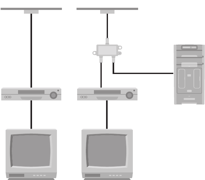 3 Connect one of these cables to the input of the VCR, and the other to the TV connector