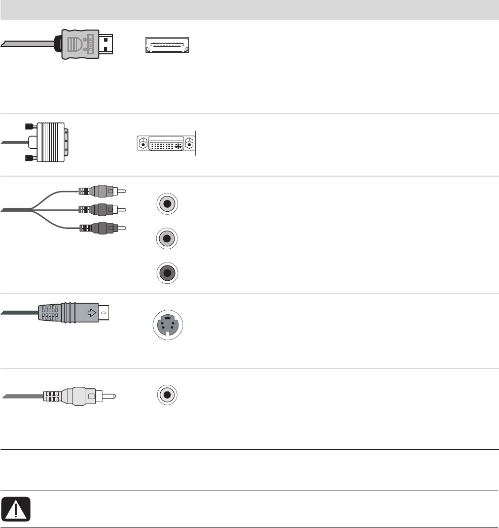 The following table shows the possible AV connection types, listed in order of decreasing video playback quality
