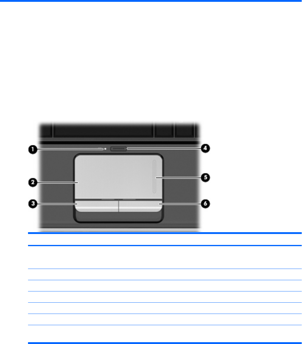(5) TouchPad vertical scroll zone Scrolls up or down.