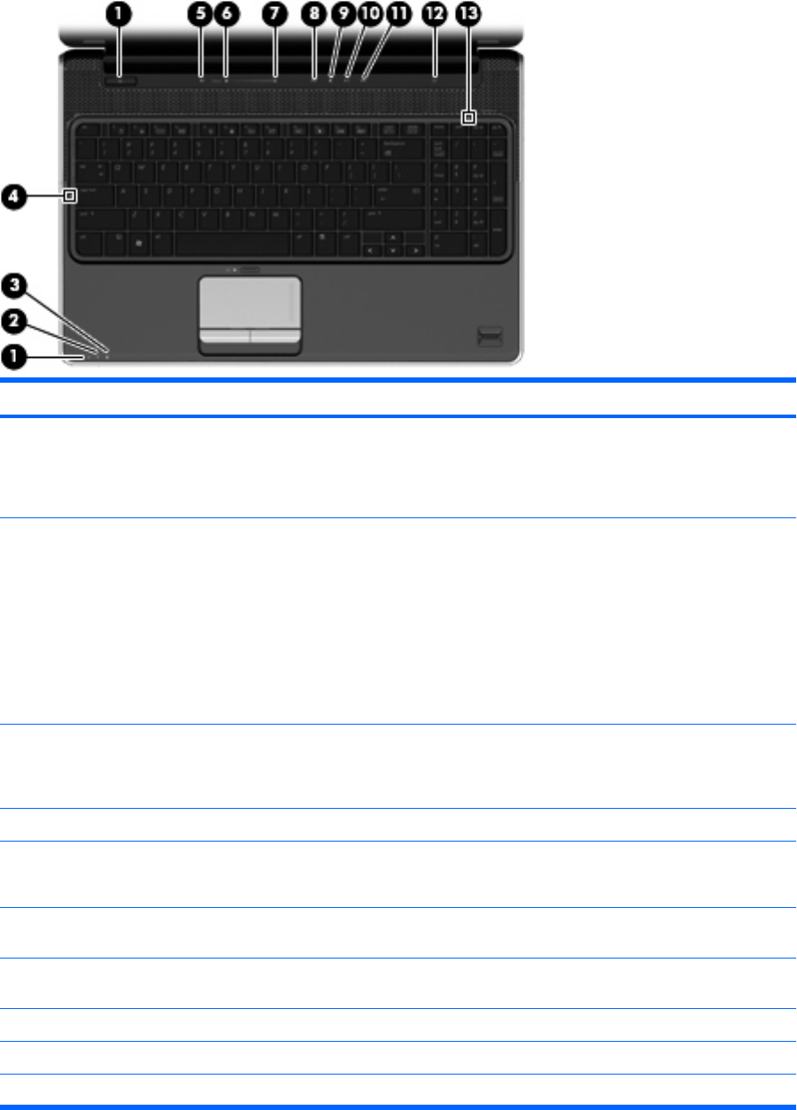 (9) Play/pause light (select models only) On: The play/pause button has been pressed.