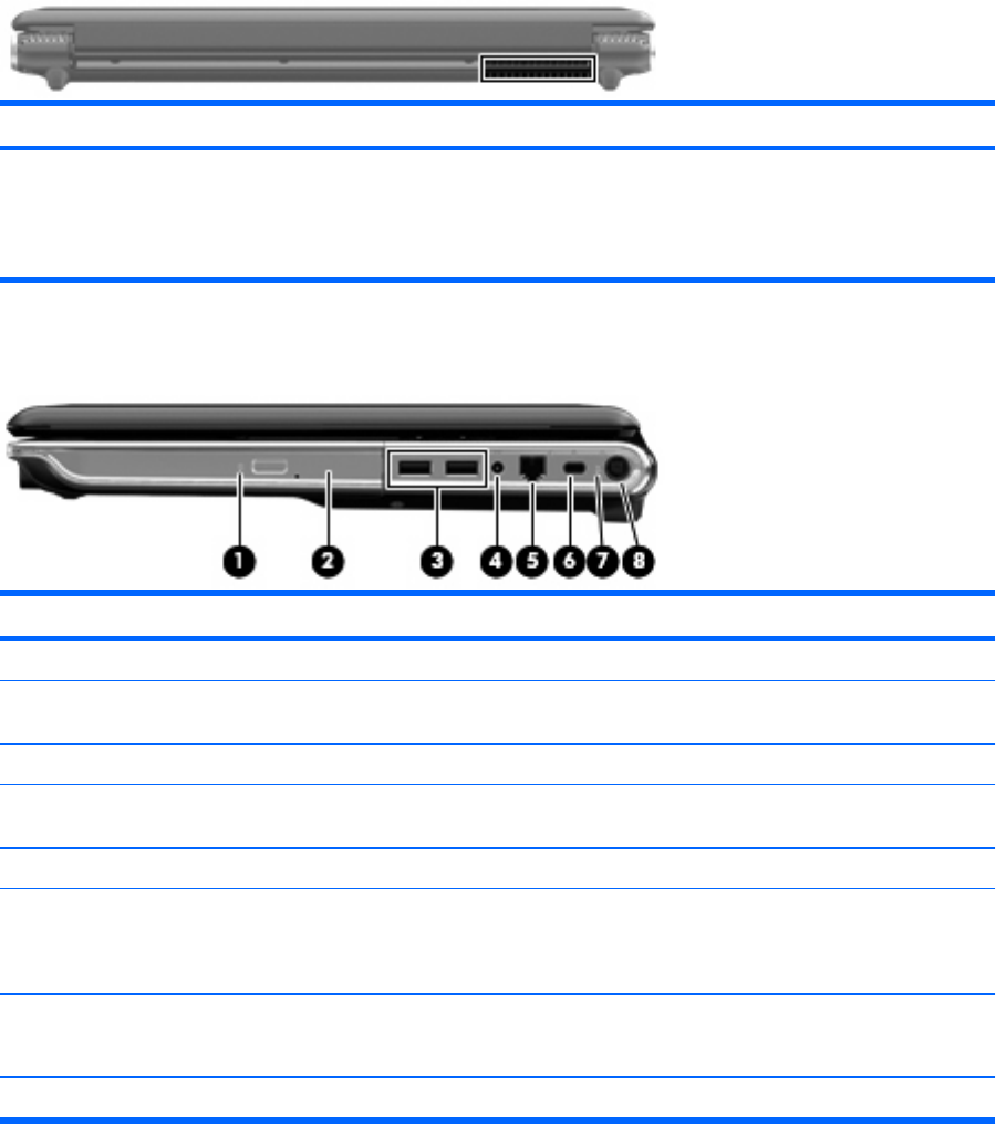 (5) RJ-11 (modem) jack (select models only) Connects a modem cable.