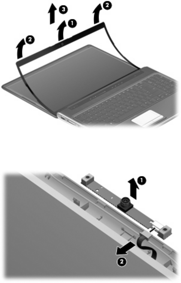 4. Release the display bezel top edge (3) from the display enclosure.