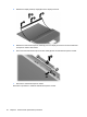 6. Disconnect the webcam/microphone module cable (2) from the webcam/microphone module.