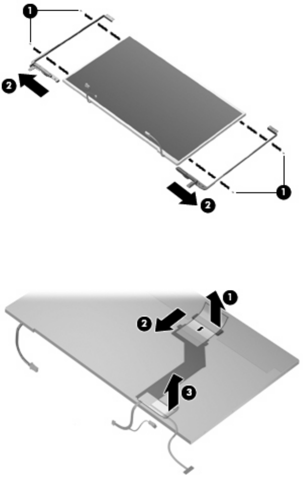 from the display panel cable, and disconnect the display panel cable (2). Remove the tape (3) that