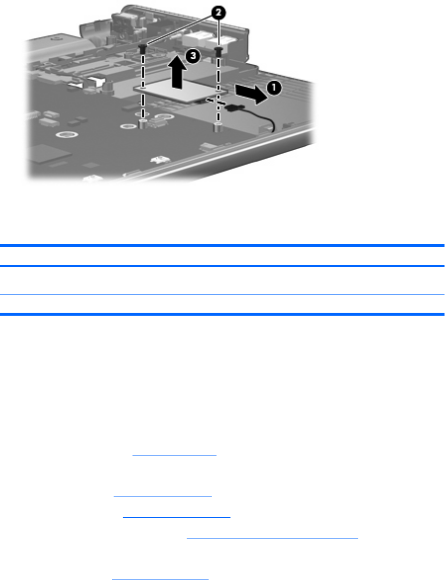 3. Lift the modem module (3) straight up to disconnect it from the system board.