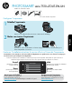 PHOTOSMART 7510 e-ALL-IN-ONE SERIES Verify the box content <3M x5 * Not included with all models. 1 2 English Setup the printer Unpack the printer Remove all tape, protective film, and packing material. Turn on the printer USB USB Connect the power cord in the back. Press the power button to turn on the printer.