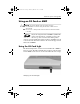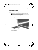 CPQ-311245-001.book Page 5 Thursday, March 27, 2003 10:17 PM Hardware Options and Upgrades Inserting a PC Card Ä■ CAUTION: To prevent damage to the PC Card connectors: ■ Use minimal force when inserting a PC Card into a PC Card slot. Do not move or transport the notebook while a PC Card is inserted. 1. Hold the PC Card label-side up with the connectors facing the notebook. 2. Gently push the card into the slot until the card is seated.