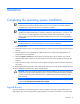 Installation Completing the operating system installation IMPORTANT: Before powering up the server and configuring the operating system software, connect the server hardware as described in the server user guide. Do not install additional hardware devices until after the software installation is complete.