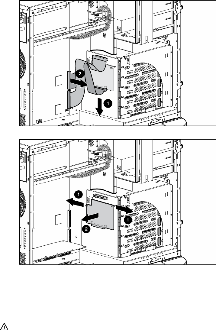 2. Remove the SCSI cable from the duplex SCSI backplane and from either the array controller or the