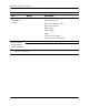 Utilitaire Computer Setup (F10) Computer Setup (suite) Titre Option Description Power Management Setup (Configuration de la gestion de l’alimentation) ACPI Function (Fonction ACPI) Active ou désactive les fonctions ACPI. La modification de ce paramètre peut rendre le système d’exploitation inopérable. ACPI Suspend Type (Type de veille ACPI) Permet de définir le type de veille ACPI. MODEM Use IRQ (IRQ du modem) Permet de sélectionner le numéro d’interruption utilisée par le modem.