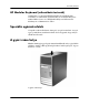 1 A termék jellemz+i Általános konfigurációs jellemz+k A HP dx5150 mikrotornyok jellemzői típusonként eltérhetnek. Ha meg szeretné tudni, hogy számítógépébe milyen hardver van beépítve és milyen szoftver van telepítve, futtassa a Diagnostics for Windows segédprogramot. A segédprogram használatához a dokumentációs CD-n található Hibaelhárítási útmutató című dokumentumban találhat útmutatást. A dx5150-es mikrotorony konfigurációja Útmutató a hardver használatához www.hp.