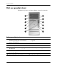 Nadgradnje strojne opreme Namestitev ali odstranjevanje razširitvene kartice V računalniku so štiri razširitvena mesta PCI. V vsako lahko vstavite razširitveno kartico PCI ali PCI Express običajne višine in dolžine do 24 cm (9,449 palca). razširitveno mesto lahko namestite razširitveno kartico PCI ✎ Valivsako PCI Express x1, x4, x8 ali x16. Razširitveno kartico namestite takole: 1. Pravilno izklopite računalnik z ukazom operacijskega sistema, nato pa še vse zunanje naprave. 2.