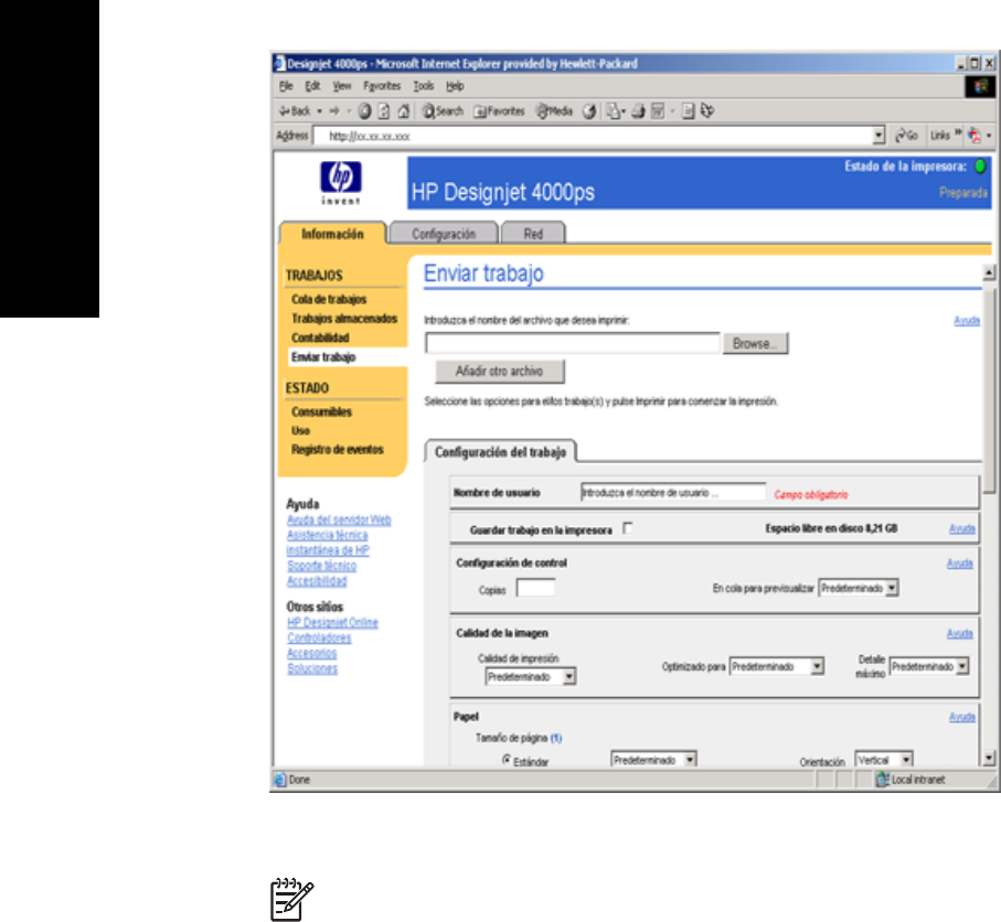 Nota Para enviar un trabajo a imprimir a través del servidor Web
