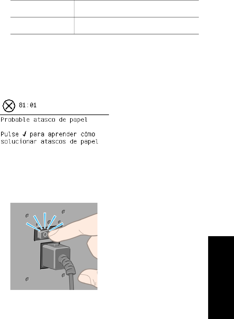 ● 81:01 indica que el papel no puede avanzar en la impresora.