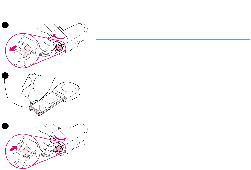 3 Vložte zásobník svorek do sešívačky a přiklopte sešívačku směrem k