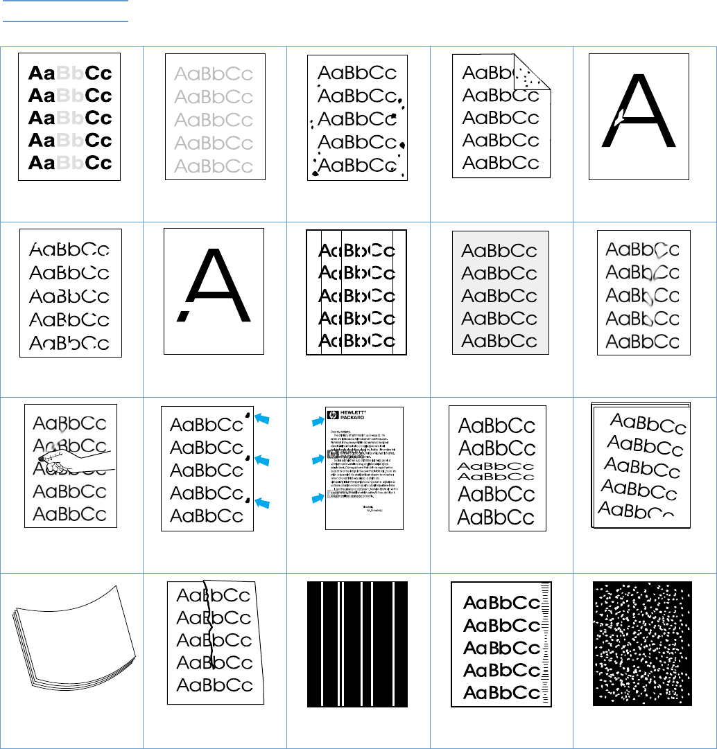 Tyto příklady představují nejobvyklejší problémy kvality tisku. Pokud problémy přetrvávají i po provedení