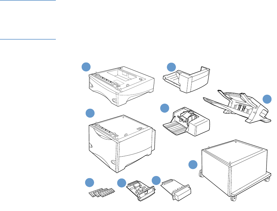 Níže jsou uvedeny možnosti rozšíření tiskárny doplňkovým příslušenstvím a spotřebním materiálem. Viz
