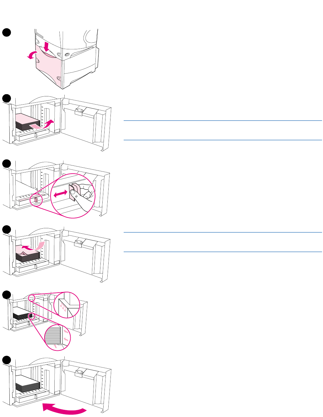 5 Zkontrolujte, zda stoh papíru nepřesahuje značky na vodítkách a zda je