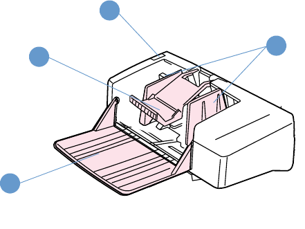 Seznamte se s součástmi doplňkového podavače obálek na obrázku.