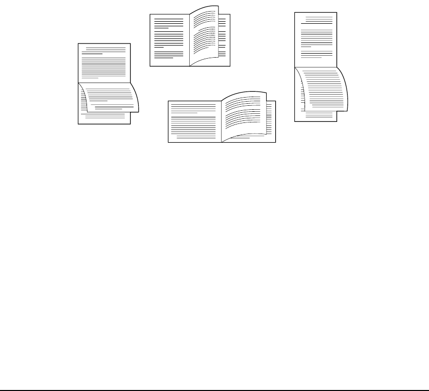 Na obrázku níže jsou zobrazeny čtyři možnosti orientace oboustranného tisku. Tyto možnosti lze vybrat v