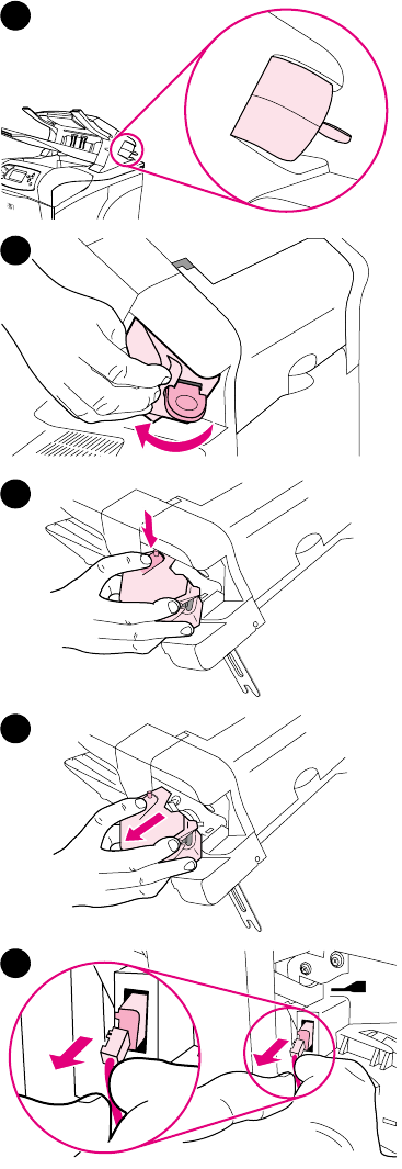 4 Zatlačte jazýček a vytáhněte sešívací jednotku ze sešívačky se