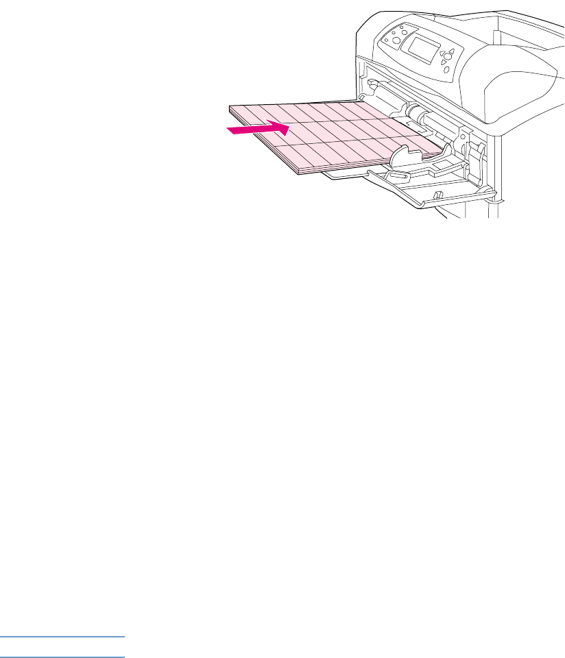 ● Laad etiketten in lade 1 met de afdrukzijde naar boven en de bovenste, korte rand naar de