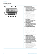 Poglavlje 1 Prikaz pisača Prednja strana pisača 1. Priključak za fotoaparat Ovaj priključak koristite za spajanje PictBridge™ digitalnog fotoaparata na pisač ili za umetanje alternativnog HP Bluetooth® bežičnog adaptera za pisač. 2. Izlazna ladica Podignite ovu ladicu kako bi mogli staviti male medije ili ukloniti papir zaglavljen na prednjoj strani. 3. Vodilica za označavanje širine papira Prilagodite ovu vodilicu rubu papira u glavnoj ladici. 4.