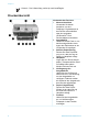 (Fortsetzung) 8. Fotofachschieber Drücken Sie diesen Schieber in Richtung Drucker, um das Fotofach zu aktivieren. 9. Obere Abdeckung Heben Sie diese Abdeckung an, um Zugang zu den Druckpatronen und zum Aufbewahrungsbereich für Druckpatronen zu erhalten sowie Papierstaus zu beseitigen. 10. Druckeranzeige Auf dieser Anzeige können Sie Fotos und Menüoptionen betrachten. 11. Speicherkartensteckplätze Setzen Sie hier Speicherkarten ein. Rückseite des Druckers 1.