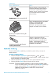 - (pokračování) Typ připojení a potřebné příslušenství Dostupné funkce Digitální fotoaparát s rozhraním PictBridge a kabel USB. Další informace naleznete v části Tisk bez použití počítače a v dokumentaci k fotoaparátu. Připojte fotoaparát k portu pro fotoaparát na přední straně tiskárny. Bluetooth Volitelný adaptér pro bezdrátové připojení tiskárny HP Bluetooth.