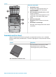 - (jätkub) Printeri tagantvaade 1 2 USB-port Selle pordi kaudu saate printeriga ühendada arvuti või HP otseprintimist võimaldava digitaalkaamera. Toitejuhtme pesa Ühendage siia toitejuhe. Märgutuled 1 Olekutuli – – – 2 roheline: printer on sisse lülitatud roheline vilkuv: printer on hõivatud punane vilkuv: printer vajab kasutaja sekkumist Mälukaardi tuli Tuli näitab mälukaardi olekut. Vt Mälukaartide kasutamine.