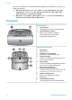 - (fortsat) Bagside af printer 1 2 USB-port Brug denne port til at tilslutte printeren til en computer eller et HP-digitalkamera til direkte udskrivning. Netledningsforbindelse Sæt strømstikket i her. Statuslamper 1 2 Indikator for hukommelseskort Lyset angiver status for hukommelseskortet. Se Indsætning af et hukommelseskort. Indikator for tændt – – – Grøn: Printeren er tændt. Grøn blinken: Printeren er i brug. Rød blinken: Printeren kræver eftersyn.