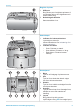 - (fortsat) Holder til internt batteri 1 2 3 4 Dæksel til batteriholder Åbn dette dæksel på undersiden af printeren for at isætte det valgfrie interne batteri til HP Photosmart. Internt batteri til HP Photosmart (Modelnummer: Q5599A) Et fuldtopladet batteri kan udskrive ca. 75 fotos. Du skal købe batteriet separat. Intern batteriholder Her isættes det valgfrie interne batteri til HP Photosmart. Knap til batteriholder Skub knappen for at åbne dækslet til batteriholder.