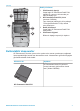 - (devam) Dahili pil bölmesi 1 2 3 4 Pil bölmesinin kapağı İsteğe bağlı HP Photosmart Dahili Pilini takmak için yazıcının alt kısmında yer alan bu kapağı açın. HP Photosmart Dahili Pil (Model numarası: Q5599A) Tam olarak şarj edilmiş bir pil ile yaklaşık 75 fotoğraf bastırabilir. Pili ayrı olarak satın almalısınız. Dahili pil bölmesi İsteğe bağlı HP Photosmart Dahili Pilini buraya takın. Pil bölmesi düğmesi Bölmenin kapağını açmak için kaydırın.