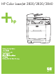 English 简体中文 Bahasa Indonesia 한국어 ภาษาไทย 繁體中文 Tiếng Việt The HP Color LaserJet 2840 all-in-one includes the same components and offers the same functionality as the HP Color LaserJet 2830 all-in-one, and also includes a 250-sheet tray and a memory card reader. Prepare the location Place the device on a sturdy, level surface in a well-ventilated area. Make sure that enough space around the device is available so that the air vents are not blocked.