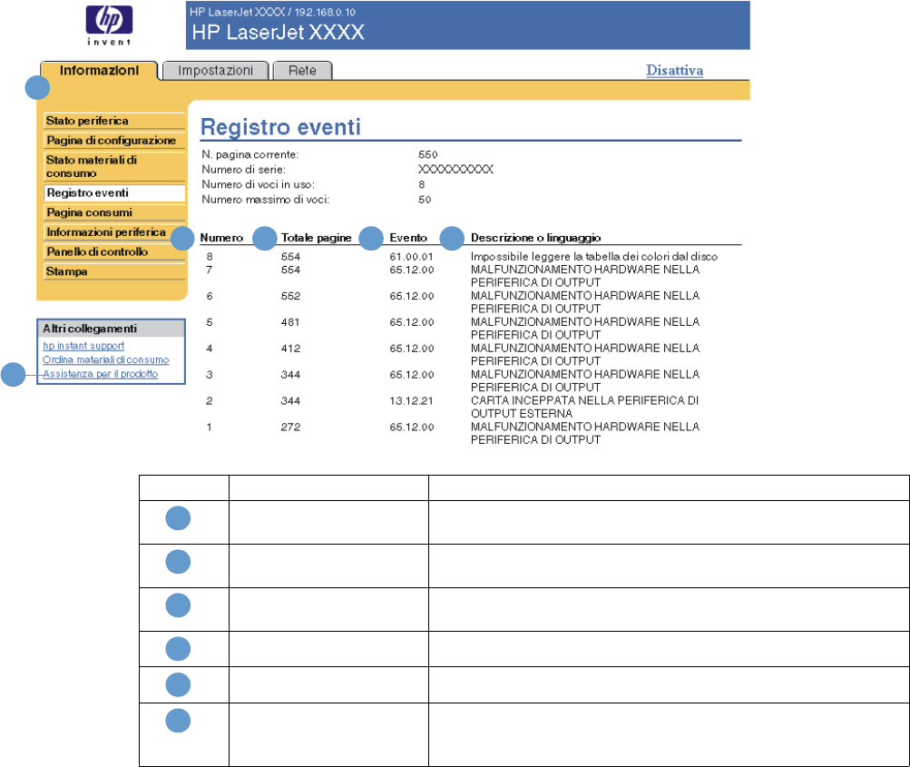 Schede e menu EWS Per ulteriori informazioni, vedere "Esplorazione del server Web
