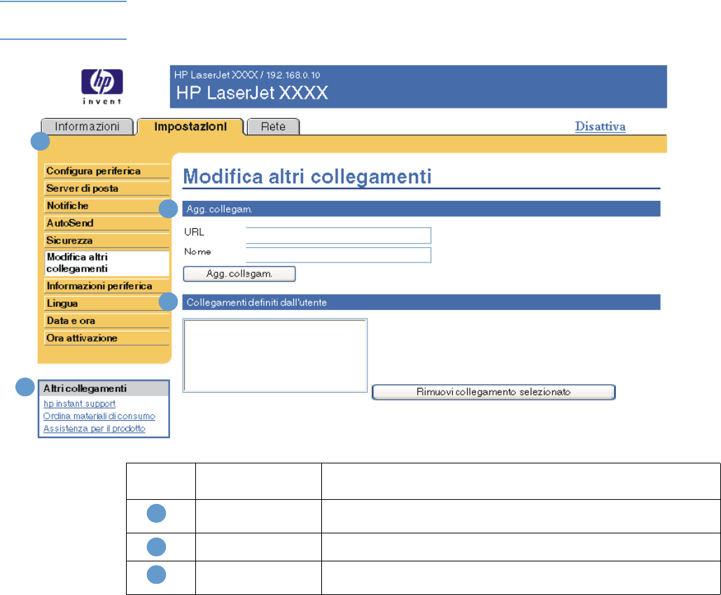 collegamenti vengono visualizzati in tutte le schermate del server EWS HP, nella casella Altri
