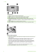 1. nodaļa Printera apskats Printera priekšpuse 1 Vadības panelis: no šejienes varat vadīt printera pamatfunkcijas. 2 Izvades tekne (aizvērta): atveriet to, lai drukātu, ievietotu atmiņas karti, pievienotu saderīgu digitālo fotokameru, pievienotu HP iPod vai piekļūtu drukas kasetnei. Printera iekšskats no priekšpuses 4 1 Ievades tekne: šeit ievietojiet papīru. 2 Ievadnes teknes pagarinājums: izvelciet, lai atbalstītu papīru.