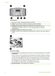 Baksida på skrivaren 1 USB-port: Använd porten när du vill ansluta skrivaren till en dator eller till en HPdigitalkamera med direktutskriftsfunktion. 2 Strömkabelanslutning: Anslut strömkabeln här. Indikatorlampor 1 På-lampa: Den här lampan lyser med fast grönt sken när skrivaren är på. Den blinkar med grönt sken när skrivaren arbetar och med rött sken när något behöver åtgärdas i skrivaren.