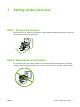 Step 7: Install the automatic document feeder (ADF) input tray 6 1. Open the ADF cover. 2. Align the two tabs on the input tray with the two grooves in the ADF lid. 3. Slide the tray into the grooves until the tray snaps into place. 4. Close the ADF cover.